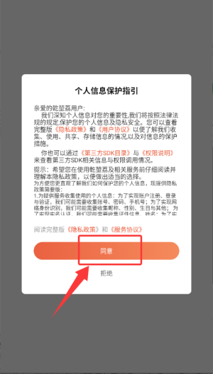 1、打开应用后在个人信息保护指引窗口内点击同意按钮,确认相关条款。