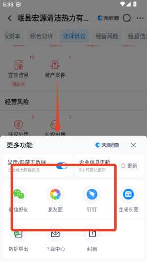 4、查询结果支持一键分享。点击右上角分享按钮,将企业信息发给朋友,方便共同讨论或参考。