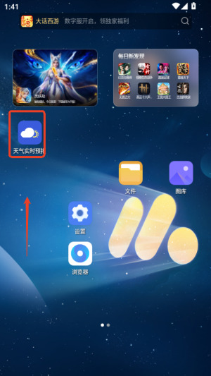 1、首先在应用商店搜索天气实时预报并下载安装,打开后允许应用获取位置权限。