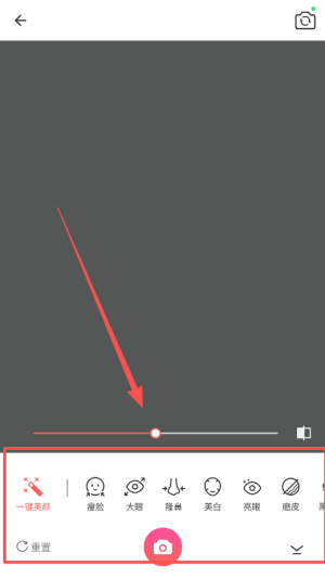 3、接着进入美颜功能,这里有磨皮、瘦脸、大眼等选项,适度调整数值能让皮肤看起来自然柔和。