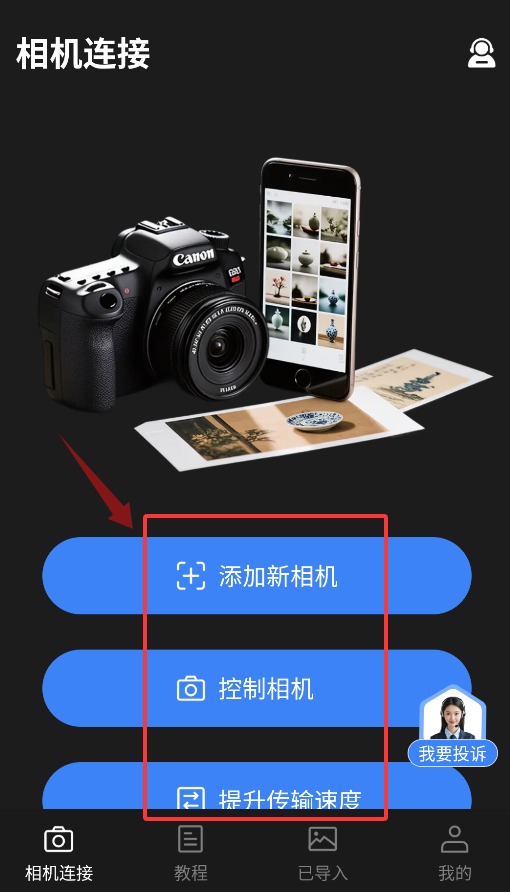 2、相机连接页可添加新相机、控制设备及优化传输速度设置。