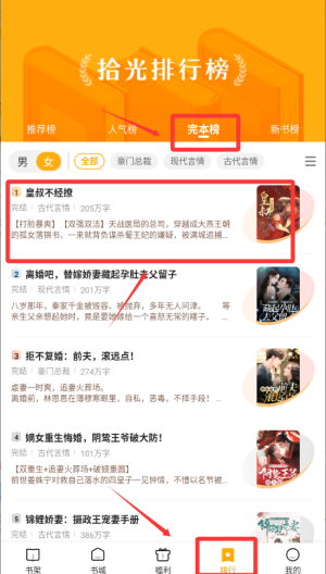 1、打开拾光小说app,在首页浏览热门排行榜或通过分类查找你喜欢的小说类型。