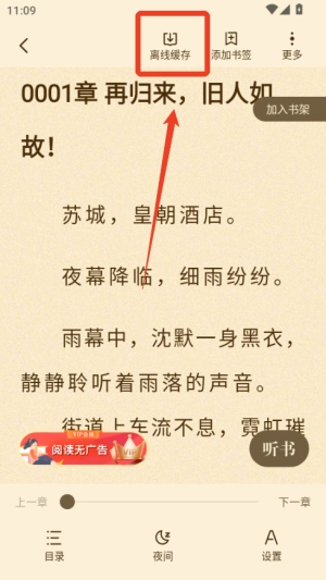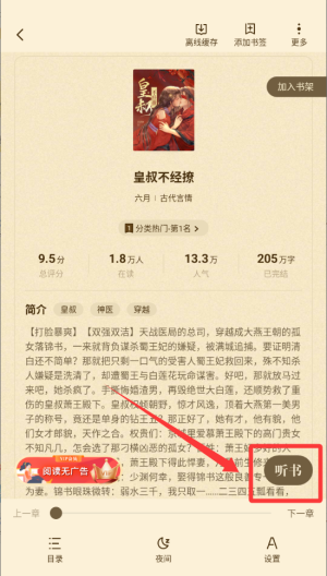 4、如需听书或离线阅读,点击相应按钮即可下载音频或缓存全文方便随时使用。