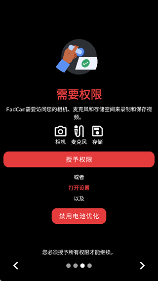 在使用fadcam相机时,用户只需在本页面下载软件,点击同意三项权限后即可进入软件。