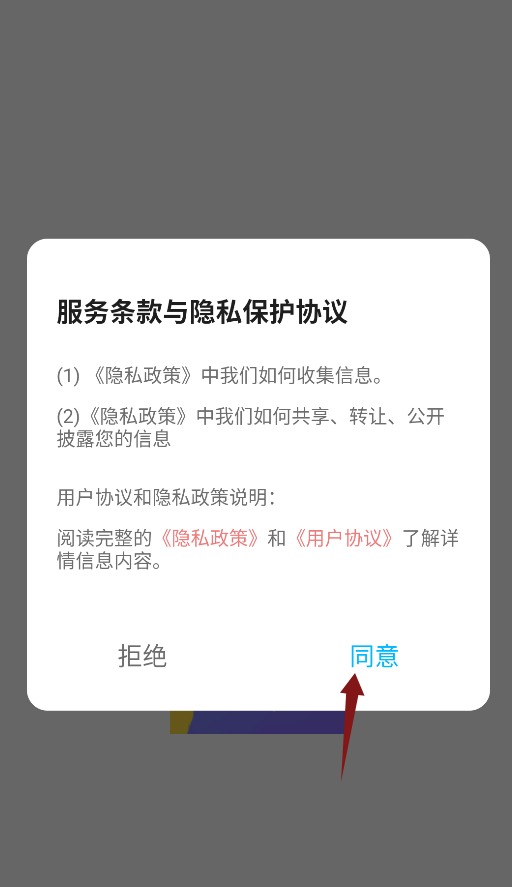 1、首次启动应用需点击同意服务条款与隐私政策,确认后方可进入。