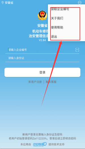 3、页面右上角设有获取企业编号、关于我们及使用帮助等功能入口,便于用户查阅。
