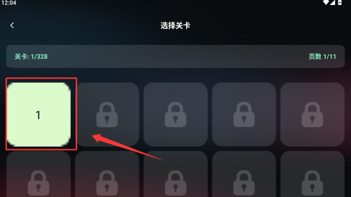 3、点击关卡1按钮进入页面。
