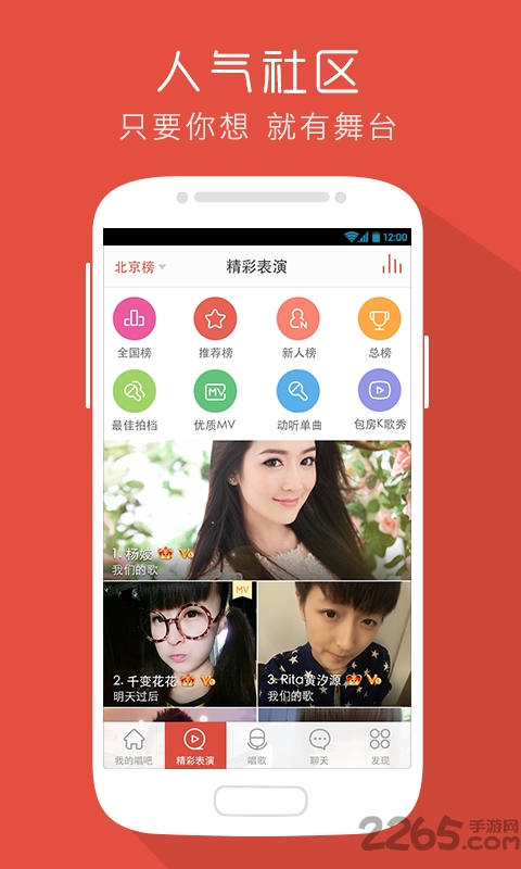 唱吧手机版是一款非常受时尚年轻男女们喜爱的手机K歌软件。在这里你可以和全国各地的帅哥美女们一起唱歌,还可以展示你的才艺,让大家为你送礼!在这里你还可以邂逅心仪的妹子帅哥,结交更多的好友哦!喜欢唱歌的朋友们还在等什么呢,来2265安卓网下载吧!