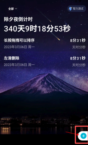 1、进入app的主界面,可以看到有2个倒计时,我们点击右下角的加号。