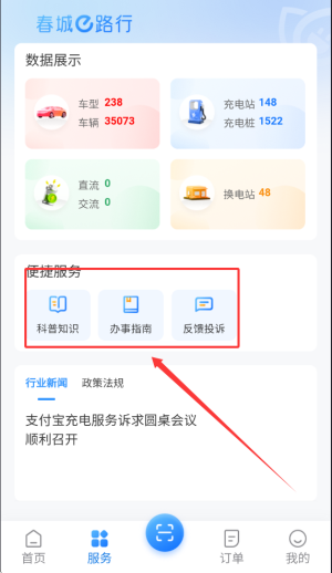 3、服务板块提供科普知识学习、办事流程指南及用户反馈投诉等实用功能入口。