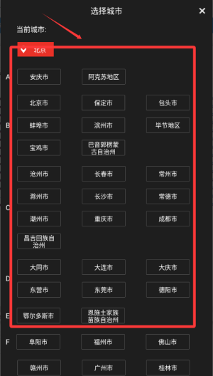 3、然后点击自己所在的城市。