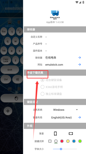 此应用需要配合仿真键鼠接收器使用,手机应用与接收器通过蓝牙连接。接收器本身是完全即插即用的,无需安装驱动。