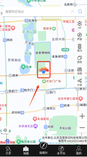 2、应用主界面通常会显示电子指南针和你的实时地理位置在地图上。