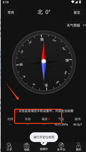 1、下载并打开地图指南针app,确保手机已开启定位权限和网络连接。