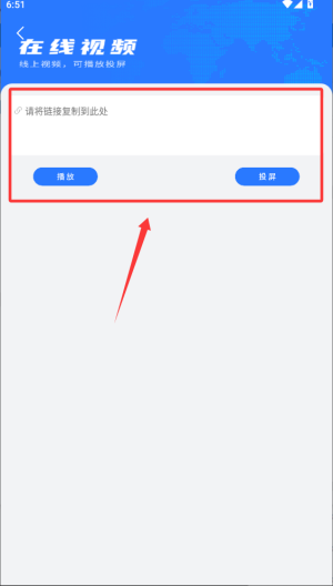 4、直接黏贴链接可以选择左边的播放或者右边的投屏。