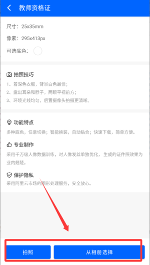 3、点击下面拍照或直接从相册选择。