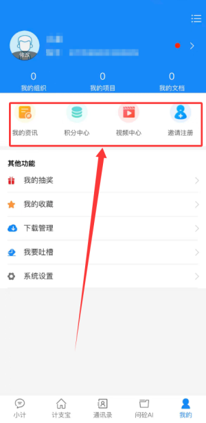 4、我的页面集中查看个人资讯动态、积分中心、视频资源库及邀请好友注册等活动入口。