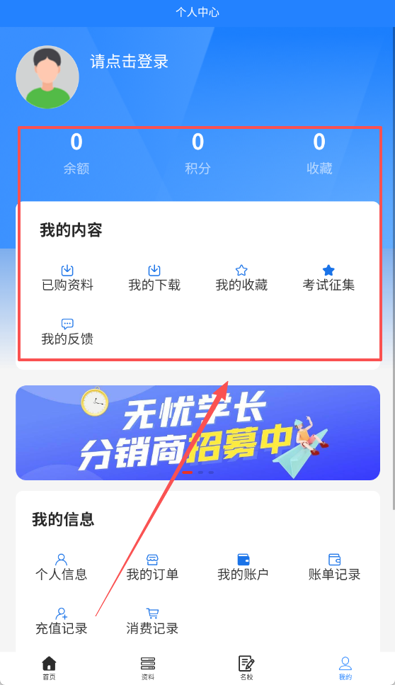 4、可以在我的页面查看余额、积分、收藏等信息,也可以查看我的下载、我的收藏等。
