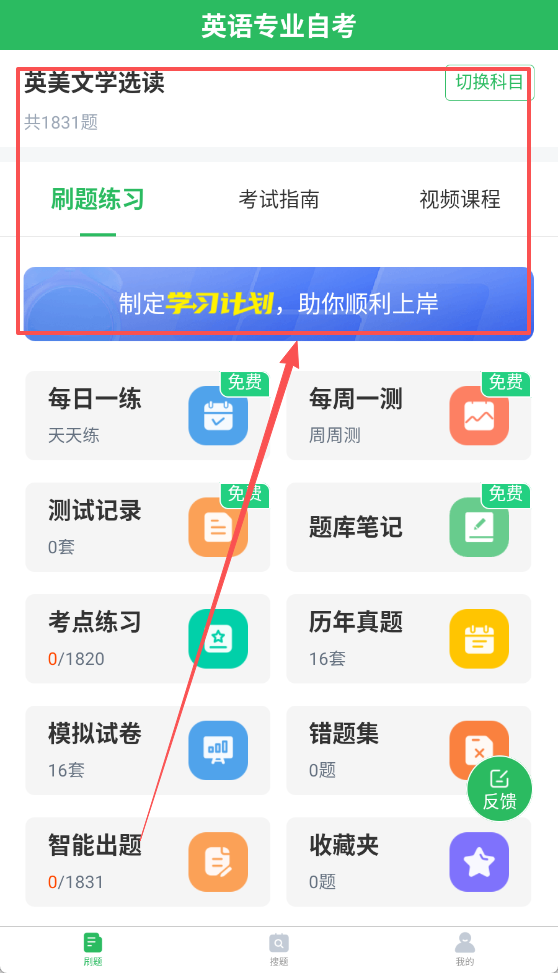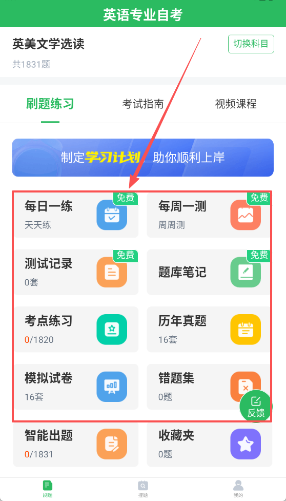1、用户首先需将英语专业自考应用程序安装至手机设备,打开后即可浏览平台提供的各类学习科目与多样练习模式。