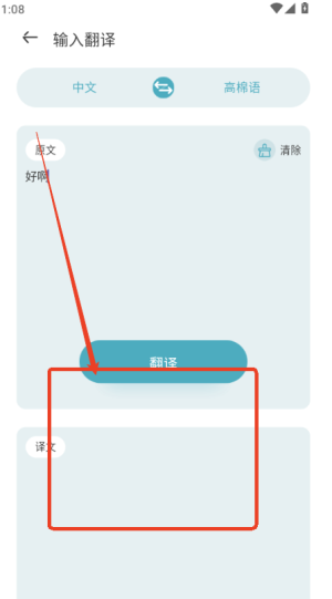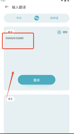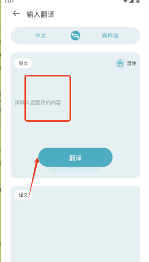 2、在输入框中键入或粘贴需要翻译的中文或柬埔寨文文本,选择翻译方向后点击翻译按钮。