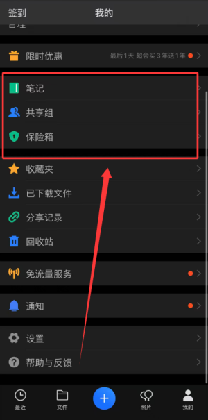 4、我的页面集中管理个人笔记记录、共享协作小组及加密保险箱等安全存储功能。