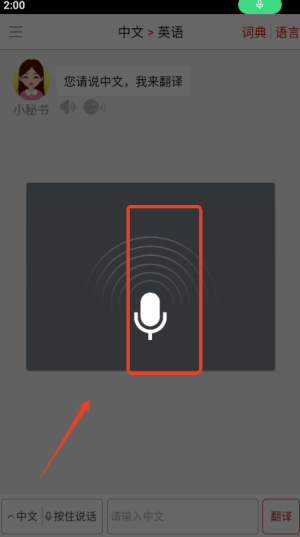 1、打开翻译app后点击语音输入按钮,直接说出中文或外语内容开始实时翻译。