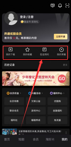 3、我的页面集中管理已下载内容、个人收藏片单、追剧预约及常看记录等观影数据。