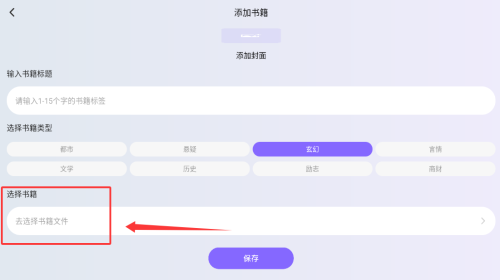 3、选择玄幻类型后点此框添加书籍。