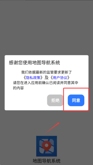 1、阅读并确认服务协议,点击进入地图导航功能主操作界面。
