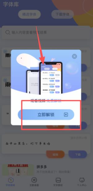 1、打开软件进入首页,字体商城有很多可供使用的字体