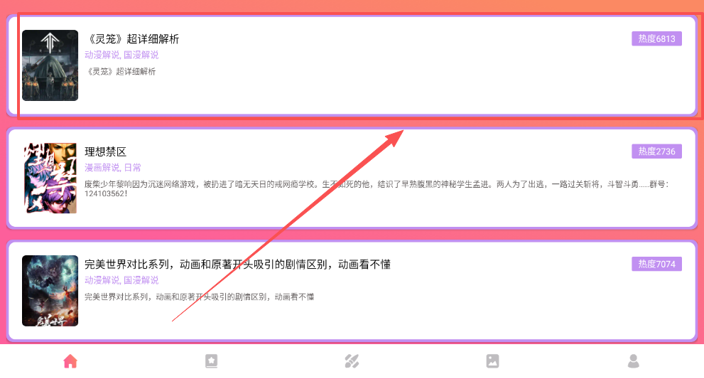 2、想看动漫解说视频的话,在首页找找热度高的推荐,点开就能开始追番了嘛。