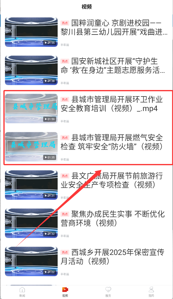 2、想找本地视频,就在“视频”板块里查看,那些带热点标签的政务动态短视频都挺有用的。