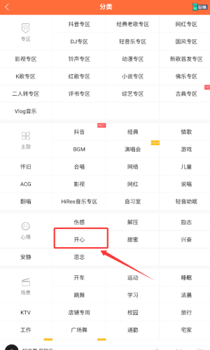 4、在分类中点开心标签听书。
