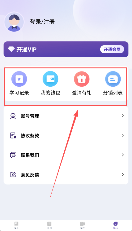 4、可以在我的页面查看自己的学习记录、我的钱包等信息,也可以参与邀请有礼活动。