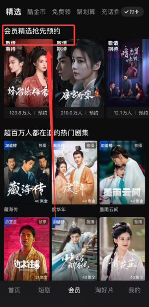 2、提供会员精选内容抢先观看权限,便于提前欣赏热门剧集或独家影视资源。