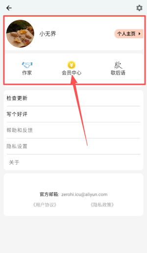 4、更多设置可在个人主页找到,包括会员中心,歇后语,检查更新,帮助反馈和隐私设置等选项。