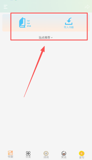 1、首次使用可导入本地书籍,支持TXT,PDF,EPUB等格式,在首页找到导入书籍按钮进行操作即可。