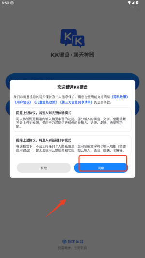 kk键盘输入法作为富有趣味的通讯辅助工具,其汇集了多样主题外观如明星卡通炫彩游戏等萌系样式,同时内置大量表情包斗图素材个性语音包以及特效花样字与聊天气泡等创意功能,能有效提升社交对话的娱乐性与生动感,让日常聊天过程变得更加轻松欢乐。
