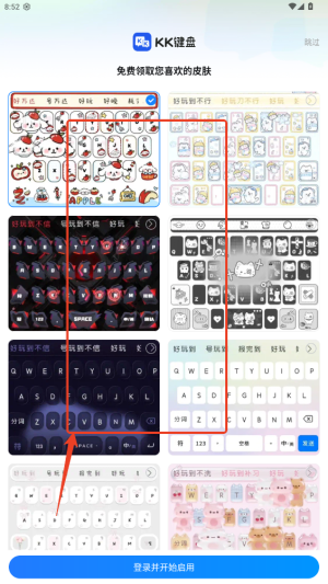 1、下载软件后打开kk键盘,在输入法设置中启用并设为默认,就能在聊天时使用丰富的特色键盘样式了。
