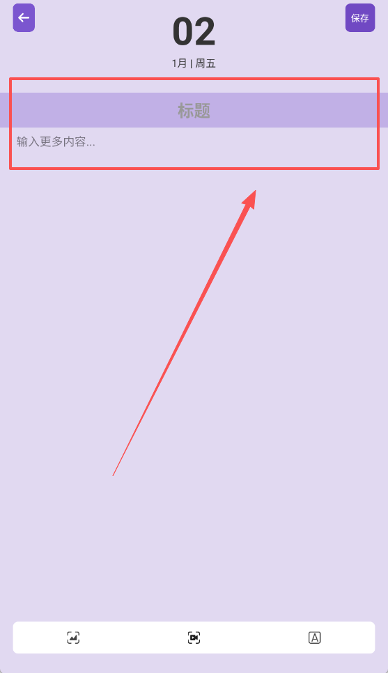 3、进入笔记编辑界面后,填上标题和具体内容,记得完成后要点击右上角的保存按钮,这样你的记录就不会丢失了。
