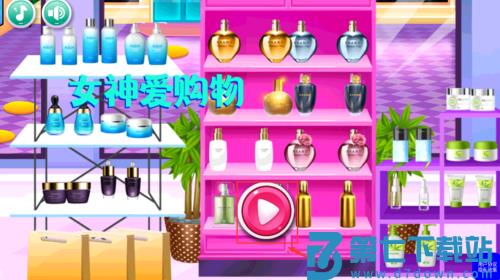 2、点击粉红货架播放按钮,开始女神购物游戏。
