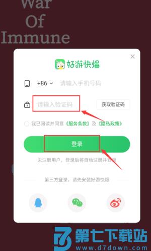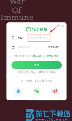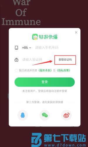 2、输入手机号码,准备获取验证码登录。