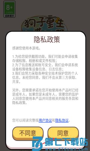 1、点击同意按钮,确认隐私政策开始游戏。