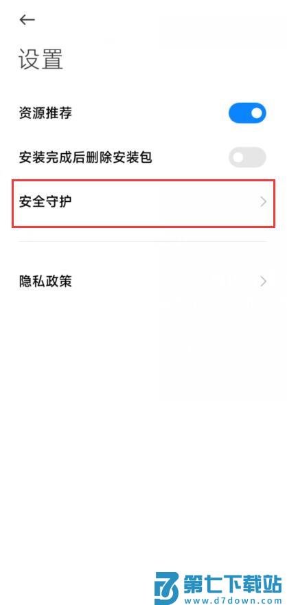 2.进入设置后点击安全守护按钮