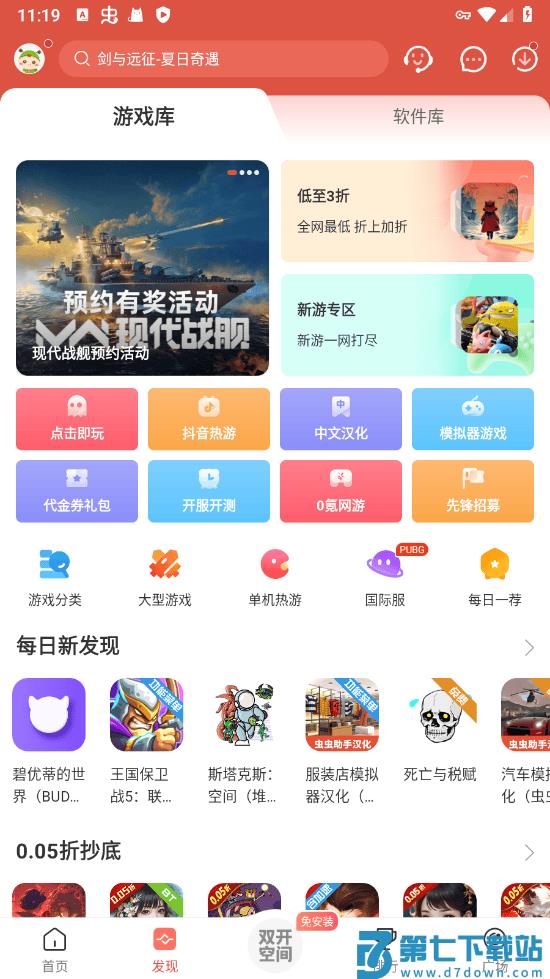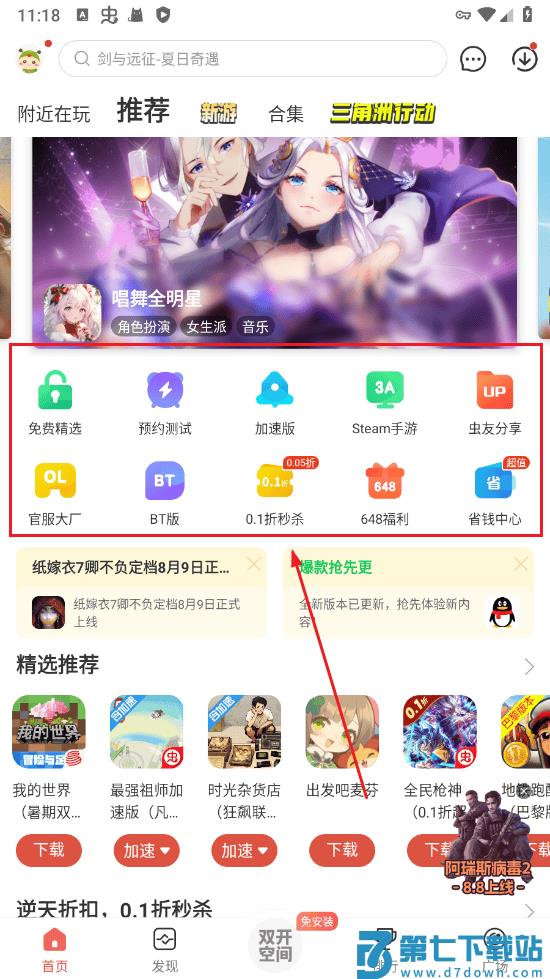 4、网游福利,开服开测、折扣代金劵让你玩转手游;