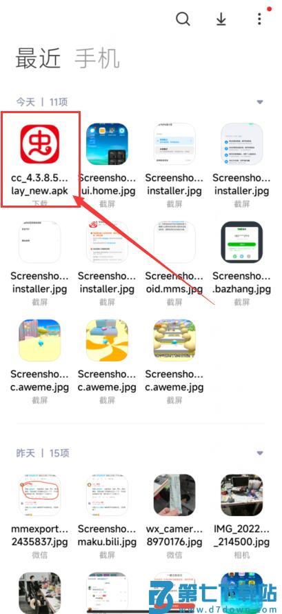 2.在文件管理的最近文件记录中,找到虫字的图标,点击安装即可