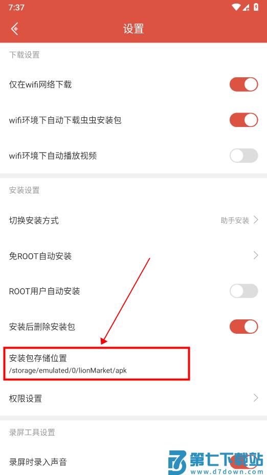 5、在设置界面,可以查看安装包存储位置。