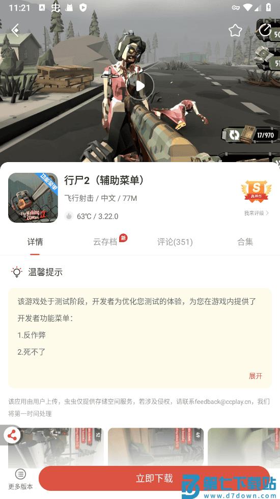 4、注意:温馨提示中所标志的就是游戏内,破解的功能,大家喜欢的话可以点击立即下载哦。