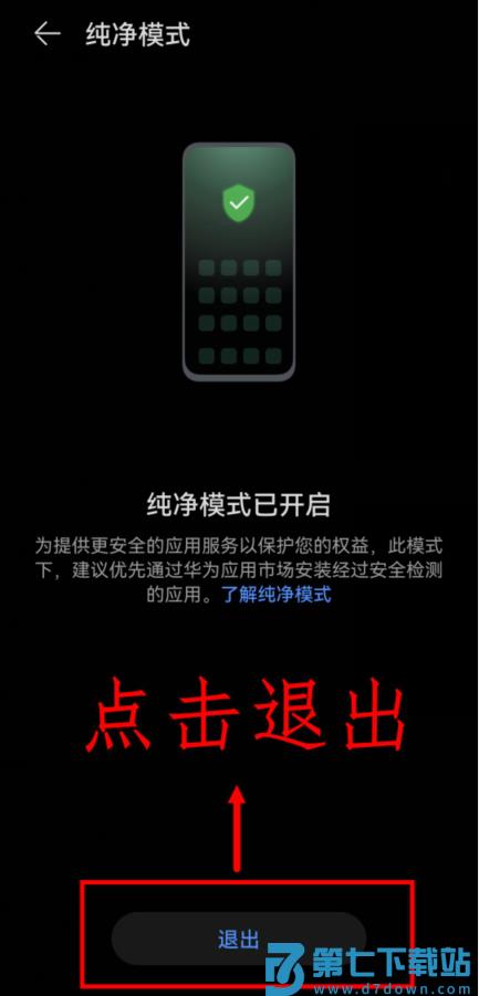 3.在纯净模式页面点击下方(退出)按钮。