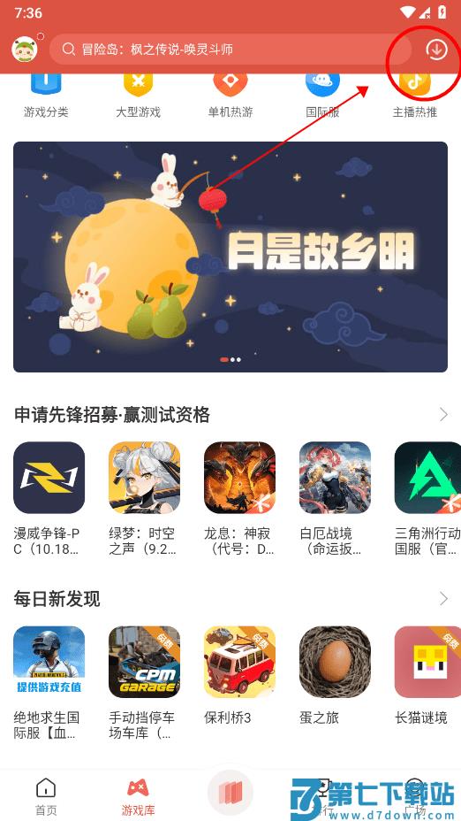 3、点开游戏库,有游戏分类、免费软件、单机热游、国际服等多种类型的游戏推荐;